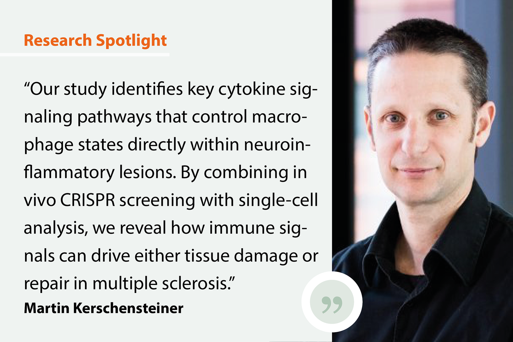 We developed an in vivo pooled CRISPR/Cas9 screening platform, targeting over 100 immune signaling genes in myeloid progenitors, and analyzed their effects directly in neuroinflammatory lesions using single-cell transcriptomics and in vivo imaging.