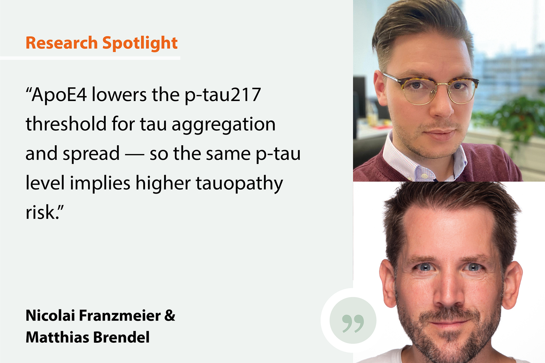 The same plasma p-tau217 value signals higher tauopathy risk in ApoE4 carriers than in non-carriers. Blood-based screening and trial enrolment may require genotype-adjusted thresholds, and ApoE4 carriers may benefit from earlier anti-amyloid intervention, before tau aggregation accelerates.