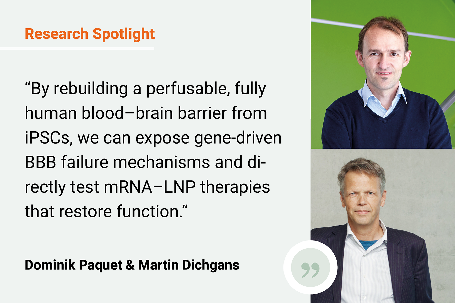By integrating stem-cell differentiation, microfluidic tissue engineering, genome editing, and multi-omics validation, the study exemplifies how interdisciplinary neurovascular research accelerates translation. It connects disease genetics to measurable BBB phenotypes and tests a realistic therapeutic strategy (mRNA-LNP rescue) in a human system. Key contributing SyNergy researchers include Martina Schifferer, Ali Ertürk, Thomas Misgeld, Stefan Lichtenthaler, Martin Dichgans, and Dominik Paquet, whose combined expertise bridges mechanism, modeling, and intervention.